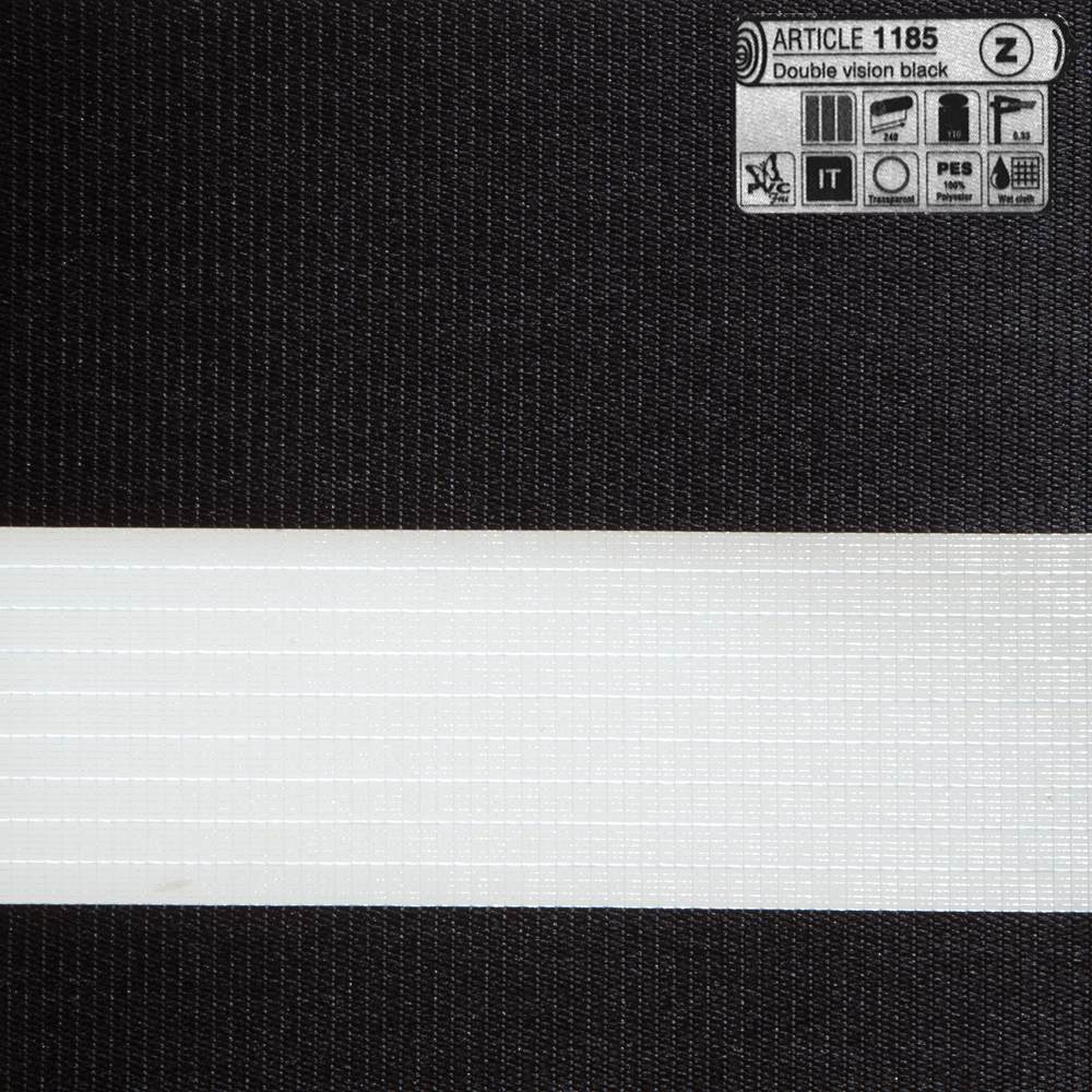 Ύφασμα μαύρου χρώματος για διπλή ρολοκουρτίνα. Είναι διαφανές και σκοτεινό. Πλένεται τοπικά με απαλό απορρυπαντικό και απαλό σφουγγάρι.